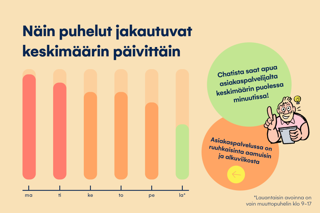 Muuttotilanteissa saat sopimuksen alkamaan uuteen kotiin jo kahden arkipäivän päähän. Jos tarvitset sähkösopimuksen uuteen kotiin heti tai seuraavalle päivälle, soitathan Oomin muuttopuhelimeen numeroon 09 2522 1100 (ma-pe 9-20, la 9-17).