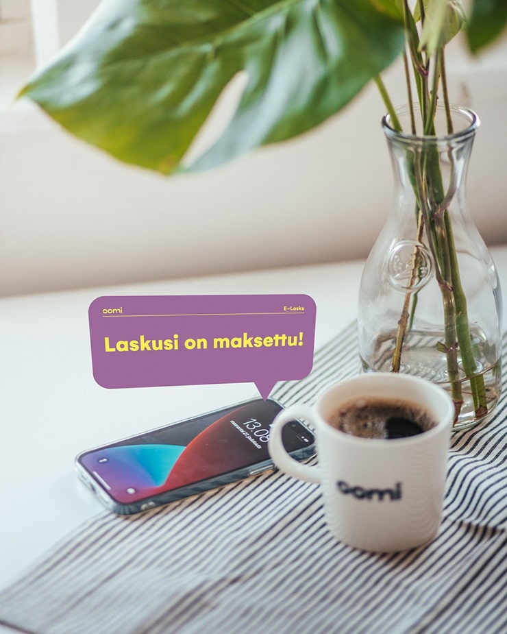 Me Oomilla arvostamme helppoutta. Haluammekin kannustaa asiakkaitamme vaihtamaan perinteisen paperilaskun vaivattomaan e-laskuun. E-lasku on turvallinen ja nopea tapa maksaa laskut ja vielä ympäristölle ystävällinen. Sähköinen lasku eroaa paperilaskusta vain toimitustavan puolesta.