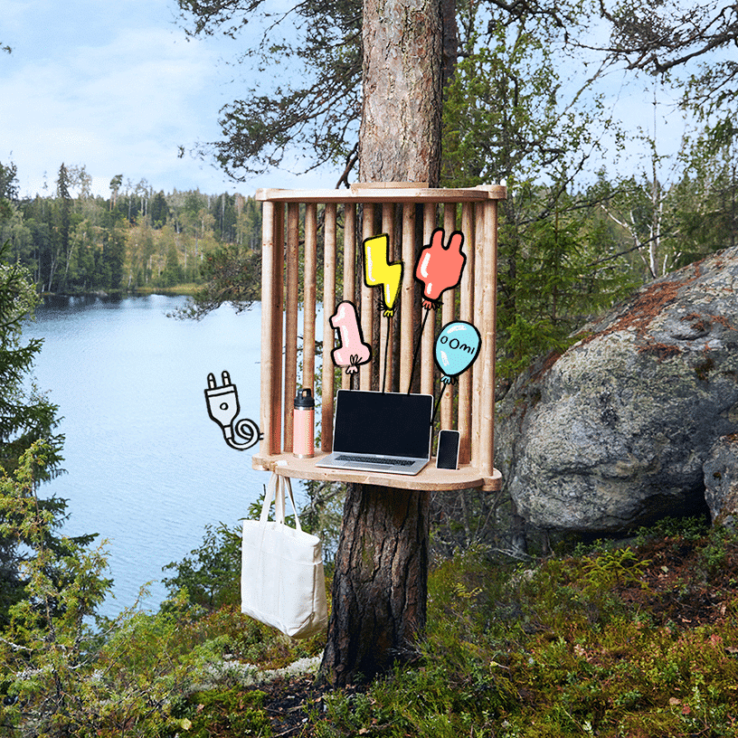 Suuntaatko Köykkyrille? Työpiste sijaitsee vajaan 300 metrin päässä alueen yläparkkipaikalta. Perille löydät kulkemalla lasten luontopolkua vastapäivään. Oomi toivottaa kaikille alueen (tai kauempaa saapuville) etätyöläisille rentouttavia hetkiä luonnossa!