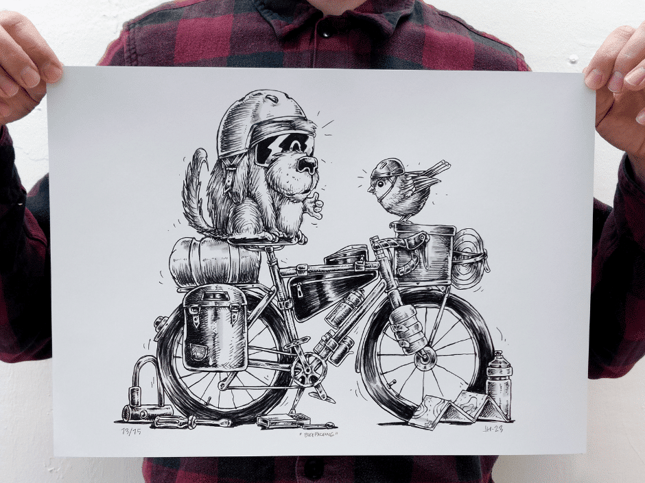 Jukka Hakanen on yhteistyön kunniaksi myös lahjoittanut Oomille tekemiään pyöräilyaiheisia julisteita, jotka pääsemme arpomaan onnekkaille voittajille! Printit ovat tulossa arvontaan Oomin somekanaville Facebookiin ja Instagramiin heinäkuun alkupuolella, joten kannattaa laittaa tilit valmiiksi seurantaan!