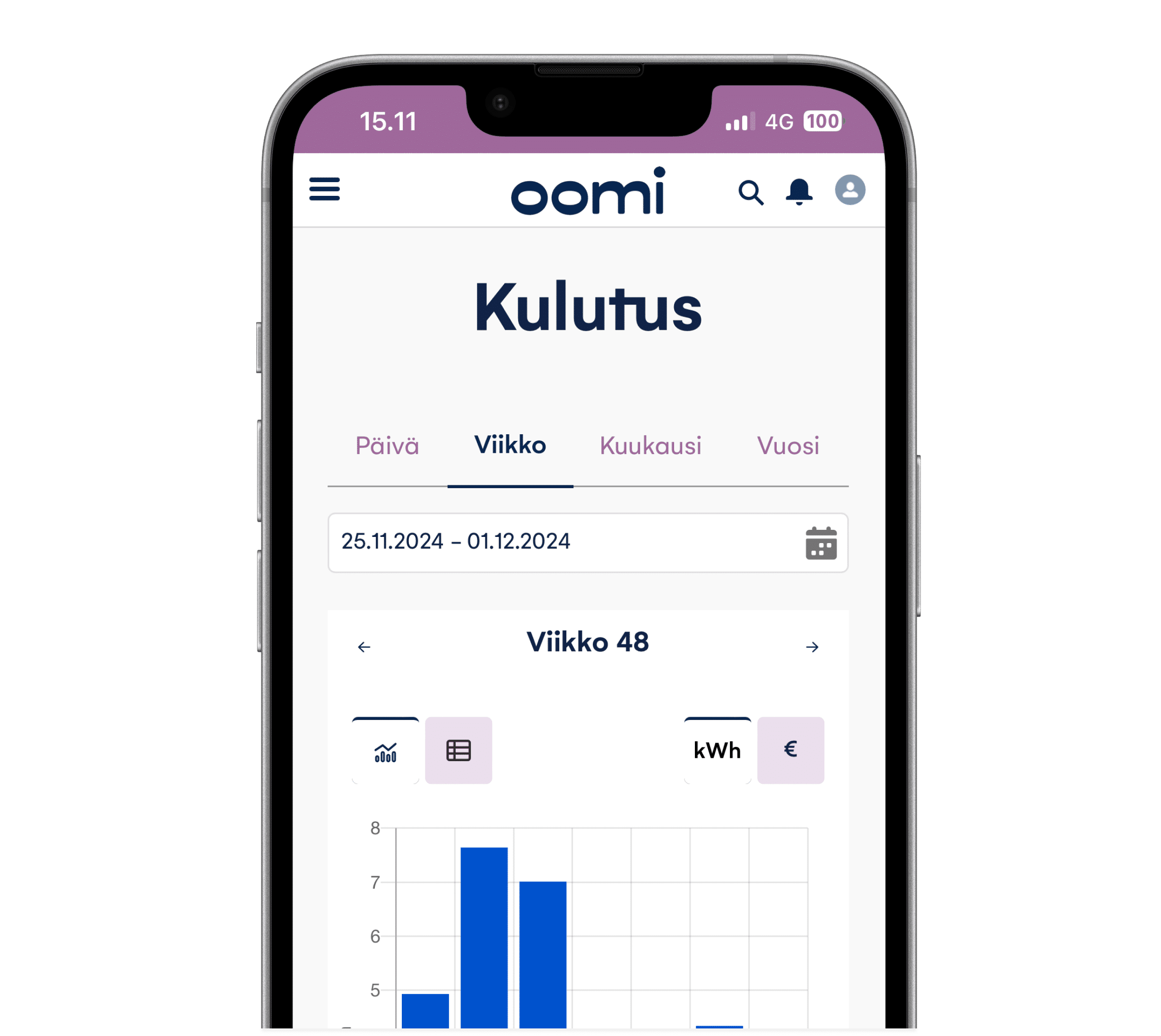 OmaOomin avulla pysyt aina ajan tasalla omasta kulutuksestasi sekä euroissa että kilowattitunneissa, jolloin sinun on helppo vaikuttaa sähkönkäyttöösi ja säästää rahaa. Jousto-asiakkaana voit myös helposti seurata kulutusvaikutustasi!