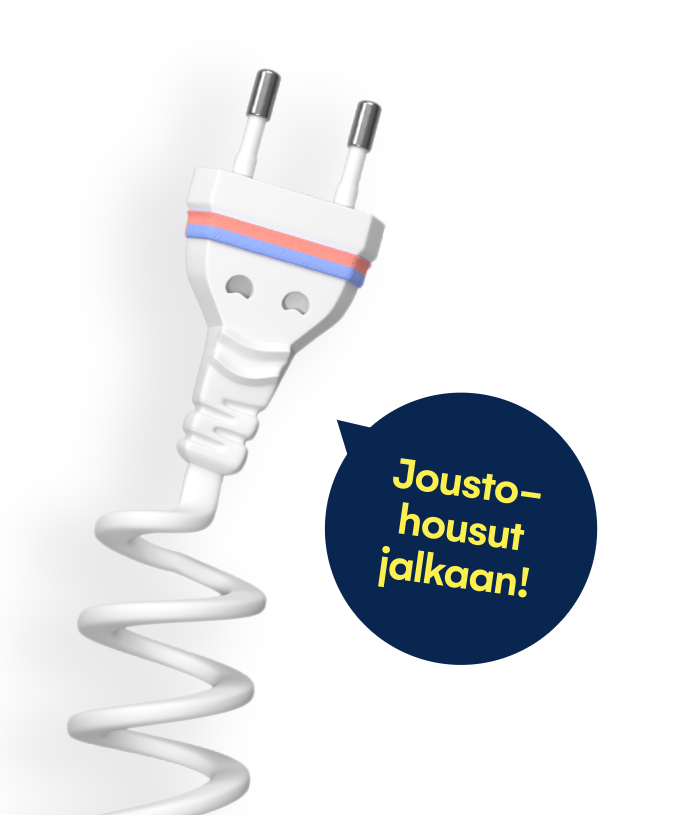 Uutena ominaisuutena mukana nyt maksuton vaihto-oikeus! Jos Jousto ei tunnukaan omalta, voit vaihtaa maksutta täysin kiinteähintaiseen sopimukseen (Oomi Kiinteä) 6 kk sisällä sopimuksen tekemisestä. Uuden kiinteähintaisen sopimuksen päättymispäivä on tällöin sama kuin alkuperäisessä Oomi Jousto ‑sopimuksessa, ja sähköenergian hinta on +1 c/kWh korkeampi kuin alkuperäisen Oomi Jousto ‑sopimuksen sähköenergian kiinteä hinta.