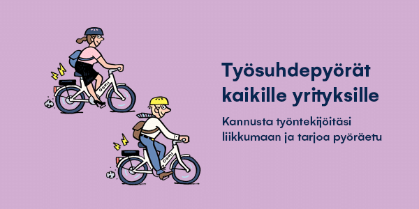 Työsuhdepyörä hyödyttää sekä työnantajaa, että työntekijää. Kannusta siis työntekijöitäsi liikkumaan tarjoamalla heille työsuhdepyörä edullisesti ja vaivattomasti. Pyöräedun tarjoaminen parantaa henkilöstönne hyvinvointia.
